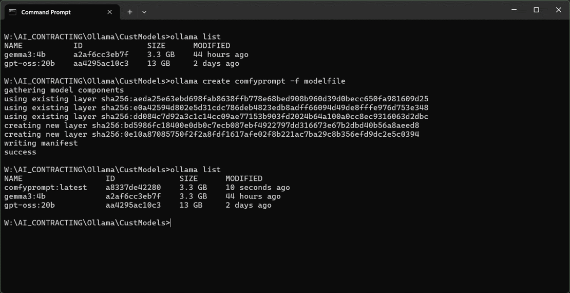 We will name our "new model" simply after our usecase, so we will create the "new" model "comfyprompt":