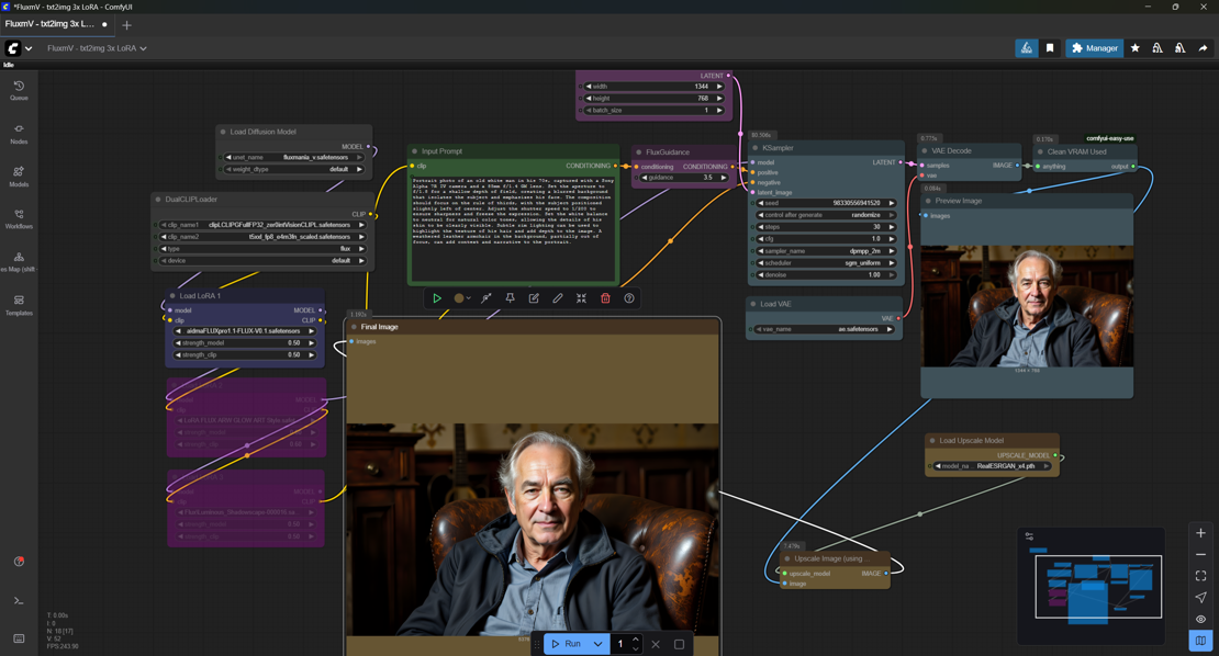 Now let's paste the response prompt from the comfyprompt model into ComfyUI and let it run: